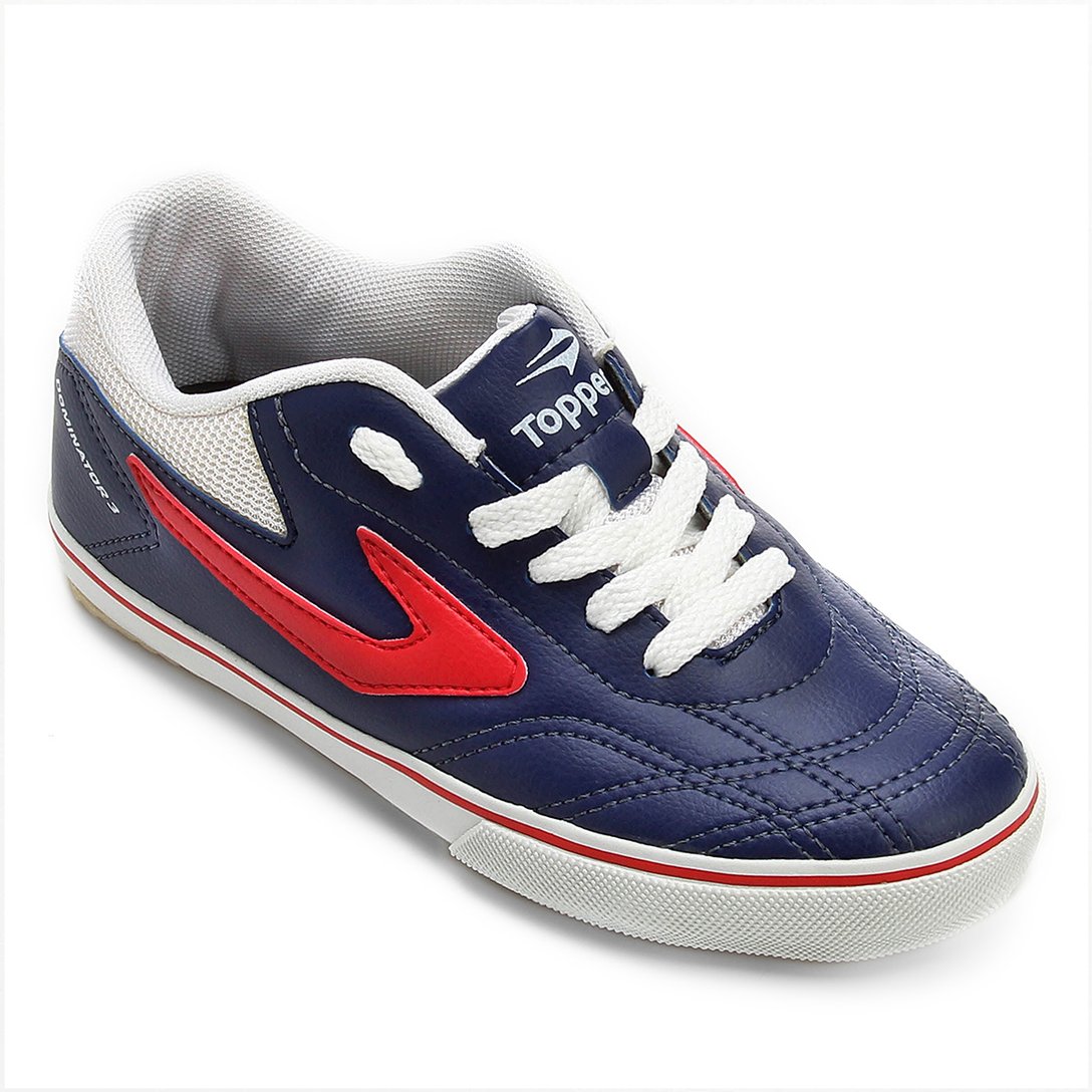 Chuteira Futsal Infantil Topper Tem Dominator 3 - Marinho+Vermelho