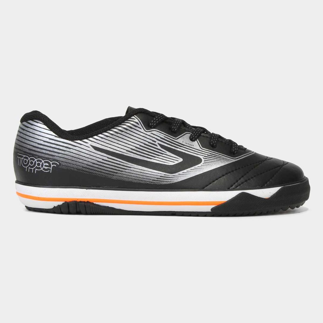 O produto "Chuteira Futsal Juvenil Topper Frontier XI - Preto+Laranja" acabou.