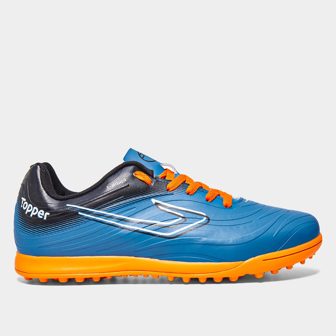 Chuteira Society Topper Forza III Unissex - Azul+Laranja