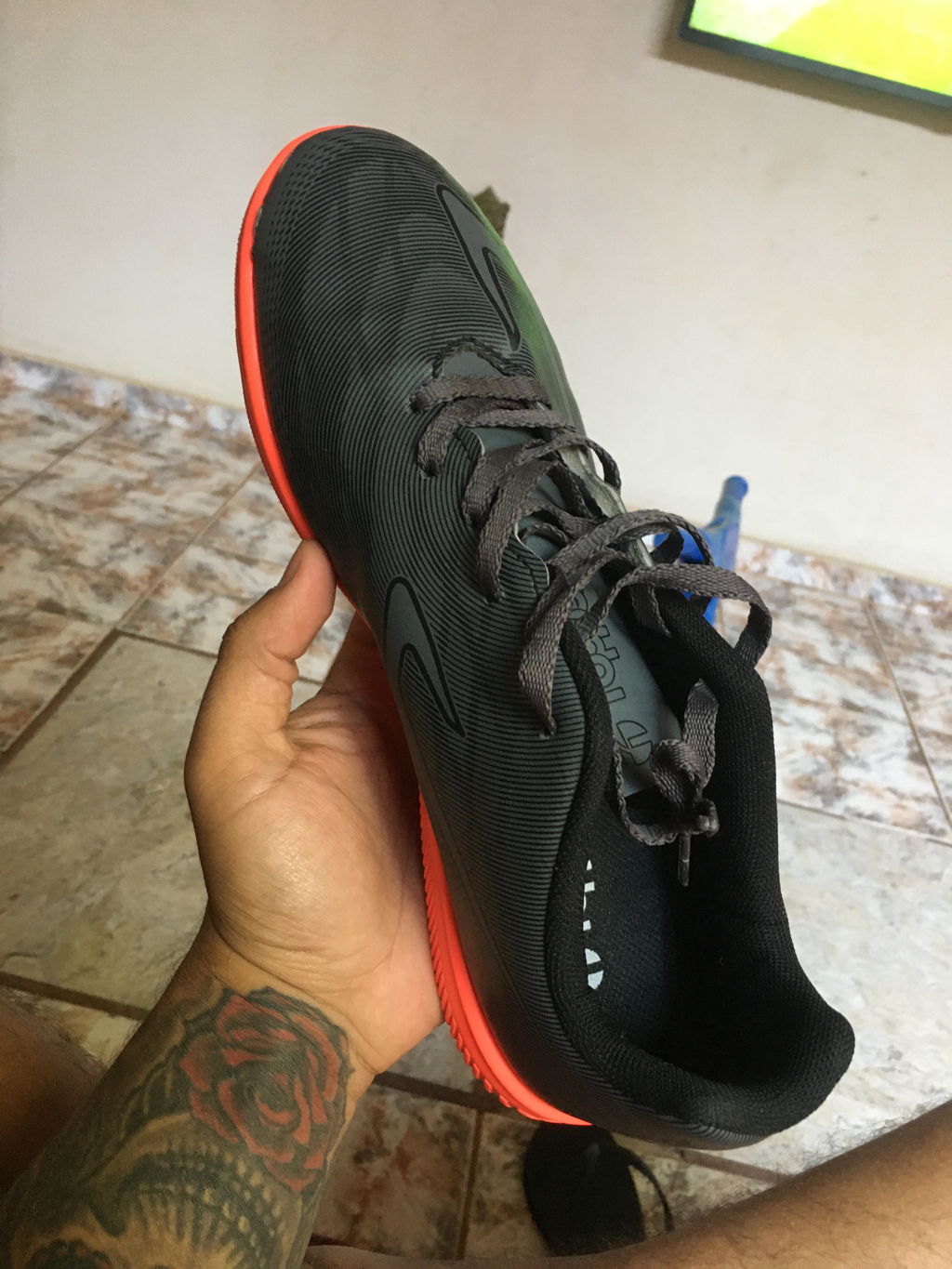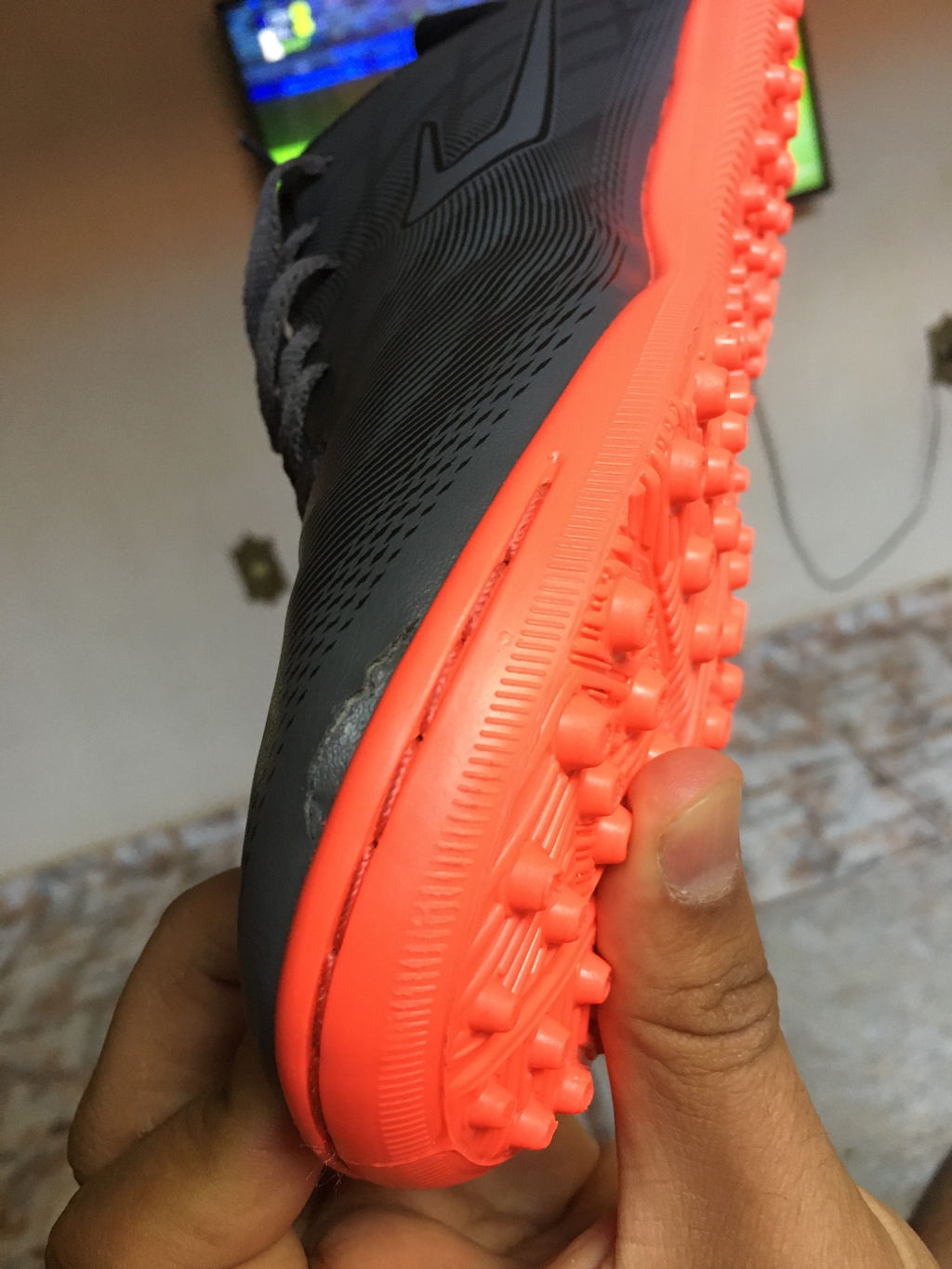 - Solado: Borracha com travas baixas para campos society