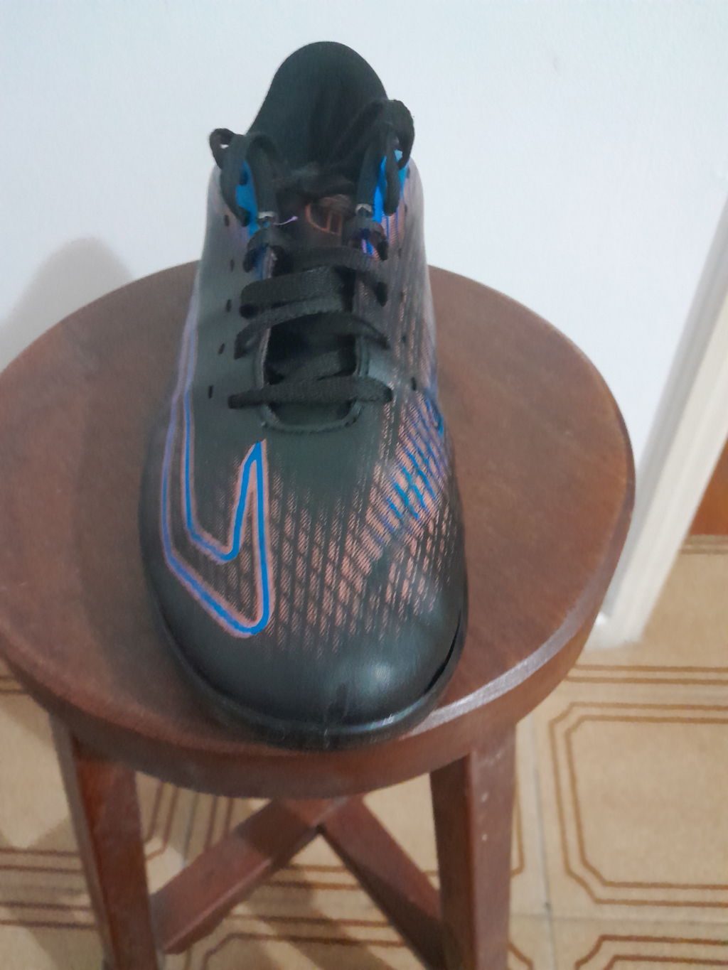 Pelo valor é um produto de bom custo beneficio, a chuteira é confortável, vem costurada na frente o que hoje em dia é um diferencial, proporciona muito mais durabilidade. Tamanho é o correto, eu possuo o pé largo e ela se adaptou muito bem. Porem tem seus contras, os cravos da chuteira são muito baixos, mesmo para um modelo de Society, isso vai fazer com que você escorregue vez ou outra e se o gramado estiver molhado então, você terá dificuldades altas para ficar em pé. A língua da chuteira é curta, o que prejudica um pouco o conforto. Mas no geral, é um ótimo custo beneficio pelo preço.