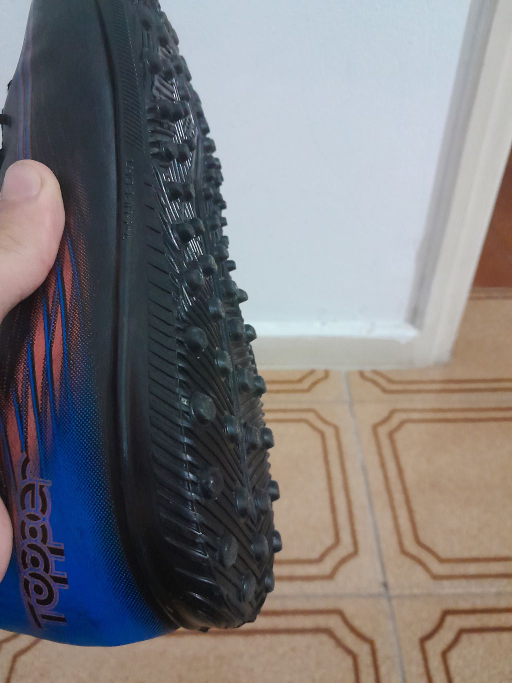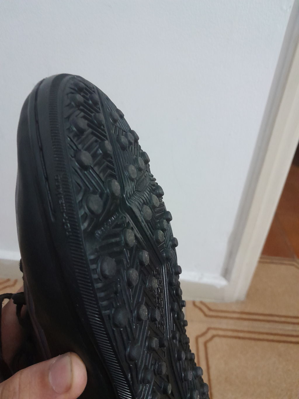 Ele é flexível, é confortável e me traz segurança na bola parada, mas escorrega MUITO, eu jogo na arrancada, paradas fortes e não sinto a chuteira me segurar o tempo todo. Ela me segura, mas não o suficiente; e seus cravos, sem muito tempo de uso (4 meses jogando 2 vezes na semana) os cravos já estão bem comidos nos estremos. Tô escorregando bastante.