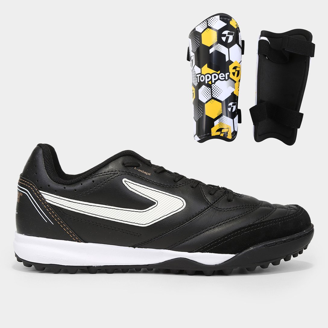 - Kit composto por: Chuteira Society Topper Maestro Pro IV e Caneleira Topper Identity III